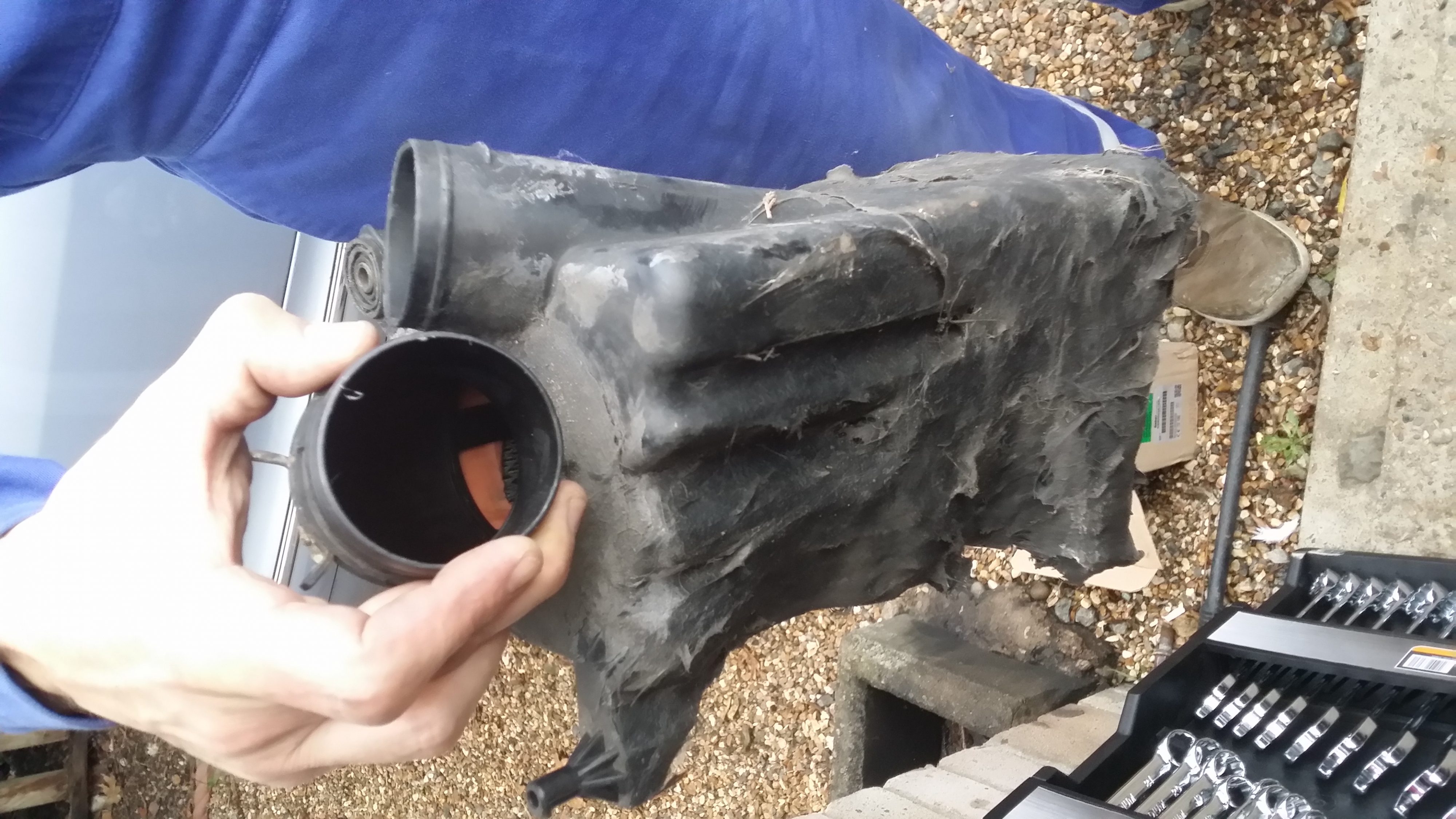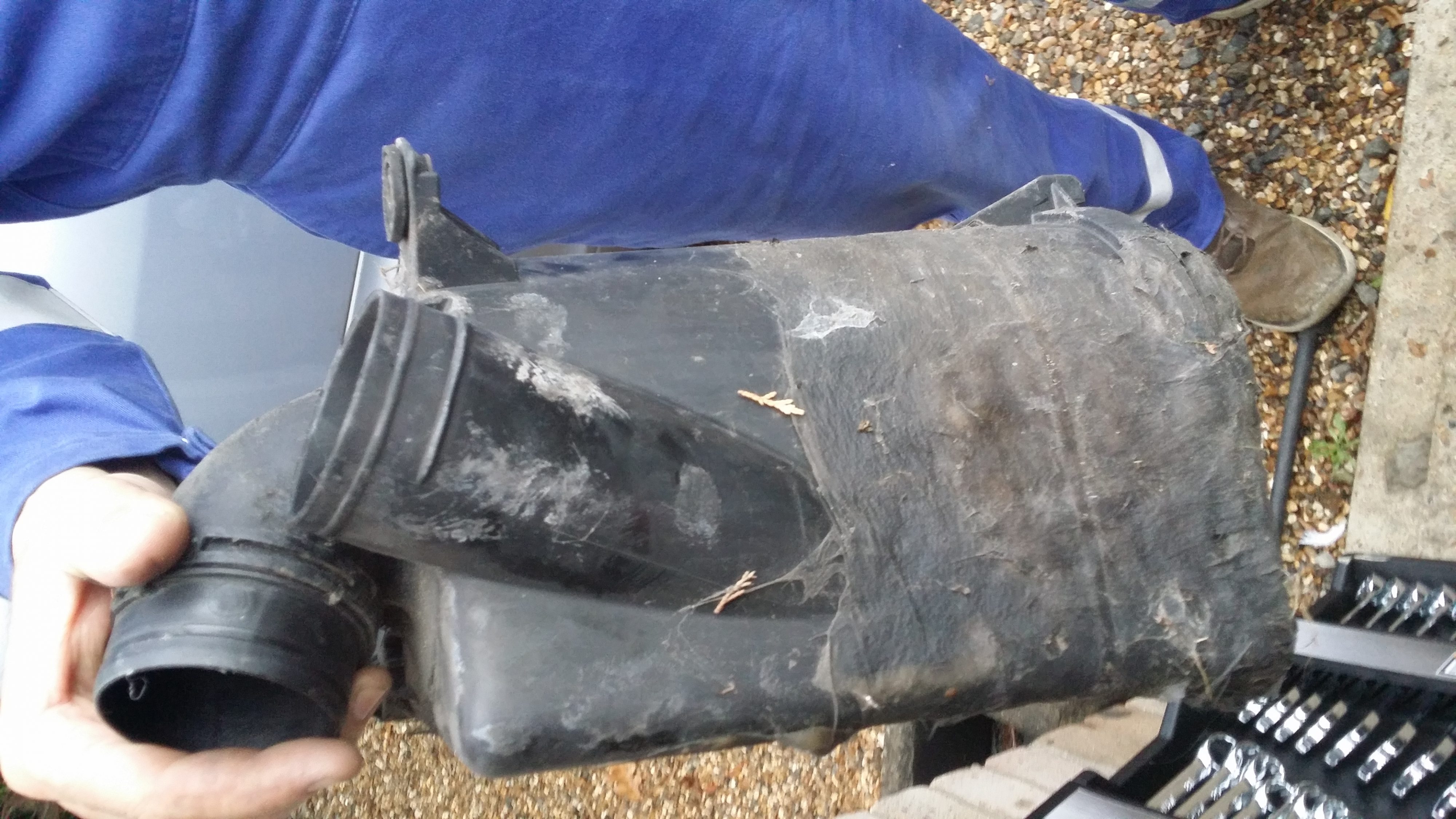 This is how it was repaired on the air filter housing! Wow, a loose cannon.